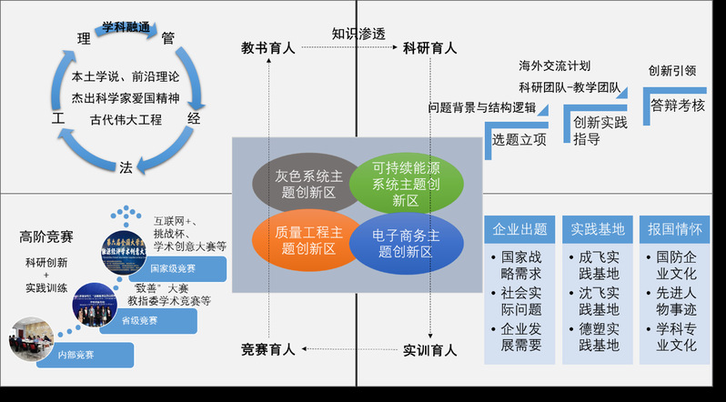 ——以主题创新区立项,实现学科融通、知识渗透。基于灰色系统、可持续发展、质量管理和电子商务四个主题创新区,学生以创新区研究主题为核心,通过选题申报、团队成员面试、小组讨论、中期考核等形式,开展跨专业、跨学科的创新实践项目研究,引导学生将课程知识渗透到实践创新中。