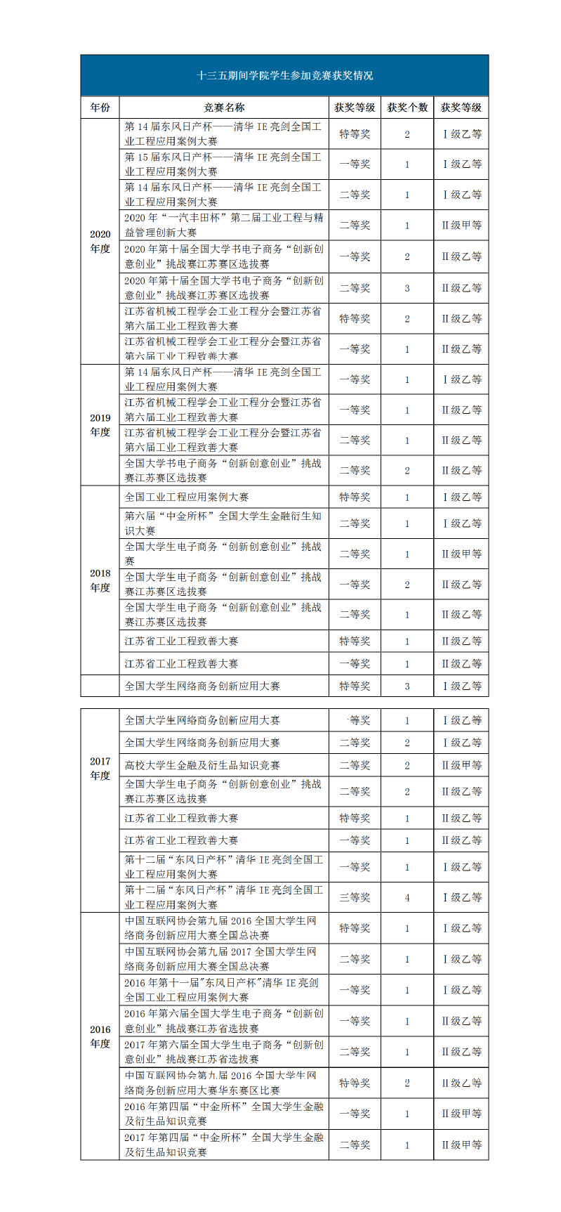 “十三五”期间,我院学生在专业学科竞赛、科研等方面成果丰硕,并以此保证了就业质量。在专业竞赛方面,专业教师指导的学生有100余人次在全国工业工程案例竞赛、全国大学生电子商务“创新创意创业”挑战赛、全国大学生网络商务创新应用大赛等国赛特等奖、金奖、一等奖20余项。在科研与创新方面,学生在校期间主持或参与了国家级、省级大学生创新基金项目,其中国家级项目19项;学生成立4家创新企业并获得风险资本支持;本科生在《Energy Policy》、《Memetic Computing》等国际国内期刊上发表论文42篇,在17个国际国内学术会议上作学术报告。在继续深造方面,连续四年学生总的深造比例超过35%,其中86.36%的毕业生到美国约翰霍普金斯大学、英国帝国理工学院、新加坡国立大学等世界百强高校深造;国内深造比例近四年平均保持在27%左右,前往清华大学、北京大学、南京大学、浙江大学等著名985高校深造的比例稳步提升。在校企合作和就业方面,我院学生在校企合作和就业过程中不断有新收获,并受到用人单位的广泛好评!中国商飞公司评价我院学生在校企合作中表现“极具战斗力”; 中国沈飞公司评价我院毕业生在工作工程中具有“肯干、苦干、巧干”的精神;亚马逊公司评价我院毕业生在工作工程中在工作期间“工作认真、踏实肯干、虚心好学、善于思考”,并且“创新能力和解决复杂疑难问题的能力特别强,为公司解决了多项管理创新难题”。