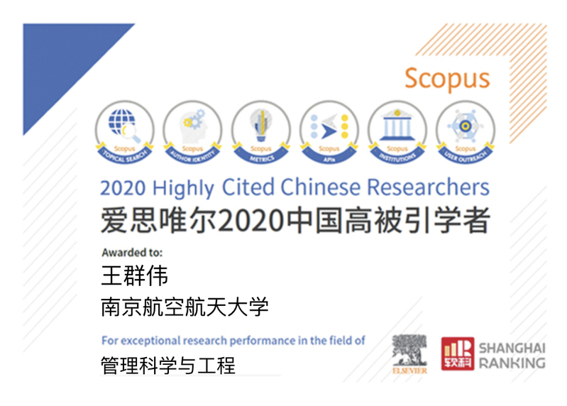 必威西汉姆联共有10个一级学科的31位学者入围。王群伟教授入选管理科学与工程学科中国高被引学者,这是继入选2020科睿唯安(Clarivate Analytics)全球高被引科学家(Highly Cited Researchers)后再次入选重要学术榜单。