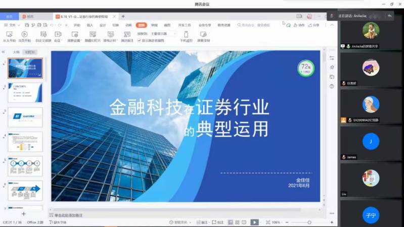 6月16日晚上,华创证券产业金融部执行总经理金佳佳应Betway体育西汉姆联信息管理与电子商务研究所的邀请,通过腾讯会议作了“证券行业的金融科技问题分析”报告,我院教授米传民以及诸多学生聆听了此次报告,本次报告由米传民主持。