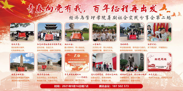 今年暑假,经管院的有志青年们抓紧机遇,踏遍神州大地,用心去真正寻找和感受建党100周年的可喜变迁,传承激荡百年的精神内核,真正用行动书写了“青春向党有我”的肆意青春和美好华章。