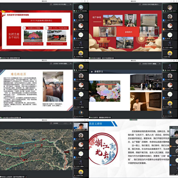各团队用视频和汇报的形式,生动地描绘了这个夏天,他们的红色足迹和青春力量。从湖南湘水中翻腾的伟人精神,山西省情景交融的红色文化,到新疆天山兵团的保家卫国情,再到江苏、四川、甘肃、云南的革命精神……“湘江北去”“与时俱进”“探寻军垦之魂”等6支团队走遍祖国的天南地北,在近20个爱国主义教育基地探寻和讲述颇具地方特色的家乡红色文化,对话身边的党员榜样。