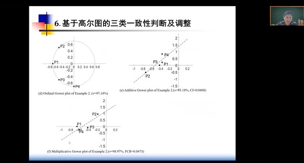 在本次学术讲座中,许叶军首先介绍了完全模糊互补判断序一致性的判断及调整,然后介绍了残缺模糊互补判断序一致性的判断及调整。接下来介绍了基于局部调整的模糊互补判断矩阵的若干一致性调整方法,包括基于距离法的序一致性及加性一致性调整,以及基于高尔图的三类一致性判断及调整。最后对若干调整方法进行总结。