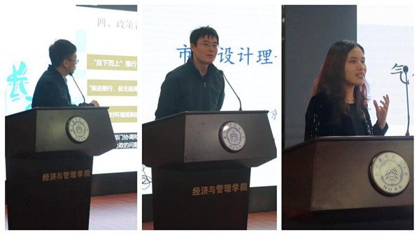 31日上午的论坛分为上半场和下半场,上半场特邀专家主旨报告由南京理工大学Betway体育西汉姆联副院长王玉东、东南大学经济管理学院副院长浦正宁和Betway体育西汉姆联查冬兰教授主持。南京财经大学国际经贸学院余泳泽教授作题为“中国式环境规制的绿色经济效应”的报告,系统阐述了河长制演进对城市绿色全要素生产率的影响。南京审计大学经济学院张军教授作题为“市场设计理论研究经验分享”的报告,介绍了市场设计理论研究的一般范式,并结合自身求学和科研经验分享了高效进行学术研究的体会。南京大学环境学院刘苗苗副教授作题为“碳中和愿景下的气候韧性社会:气候风险感知多学科交叉研究的启示”,指出碳中和愿景下提升社会的气候韧性是现实且紧迫的任务,创新性地引入了神经科学实验,揭示了公众气候变化风险感知形成的生理心理学机制。