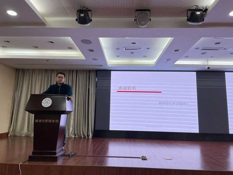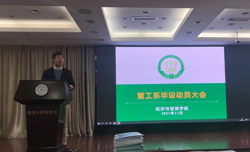 2021年11月29日,管理科学与工程系在经管学院A0305召开,管理科学与工程系系主任米传民教授、管工系教学督导沈洋副教授、系副主任何沙玮副教授、虞先玉副教授等系专业教师及管工系全体大四学生参加了会议。