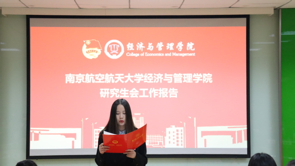 正式会议上,李时铭和朱燕分别代表上一届学院学生会和研究生会向代表们汇报了一年以来学生会及研究生会的工作。