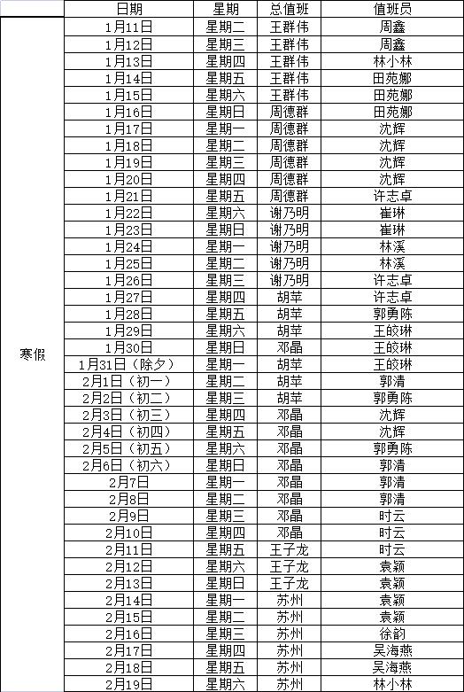 Betway体育西汉姆联2021年寒假值班表