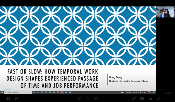 4月14日,英国杜伦大学教授邓红应Betway体育西汉姆联人力资源管理研究所和江苏省人力资源发展研究基地的邀请,在线上为我院师生作了题为“Fast or Slow: How Temporal Work Design Shapes Experienced Passage of Time and Job Performance”的精彩学术报告。本次报告由教授胡恩华主持,相关教师、博士生和硕士生参加了此次学术报告活动。