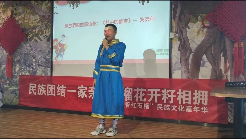 趣味运动会后,“经管红石榴”民族音乐会在民族餐厅举行,多才多艺的少数民族同学带来了蒙语歌曲、新疆舞蹈等精彩表演,让人深切感受到多民族国家的独特魅力,音乐会的最后,全场大合唱《父亲的草原母亲的河》,民族团结在这一刻被体现的淋漓尽致。