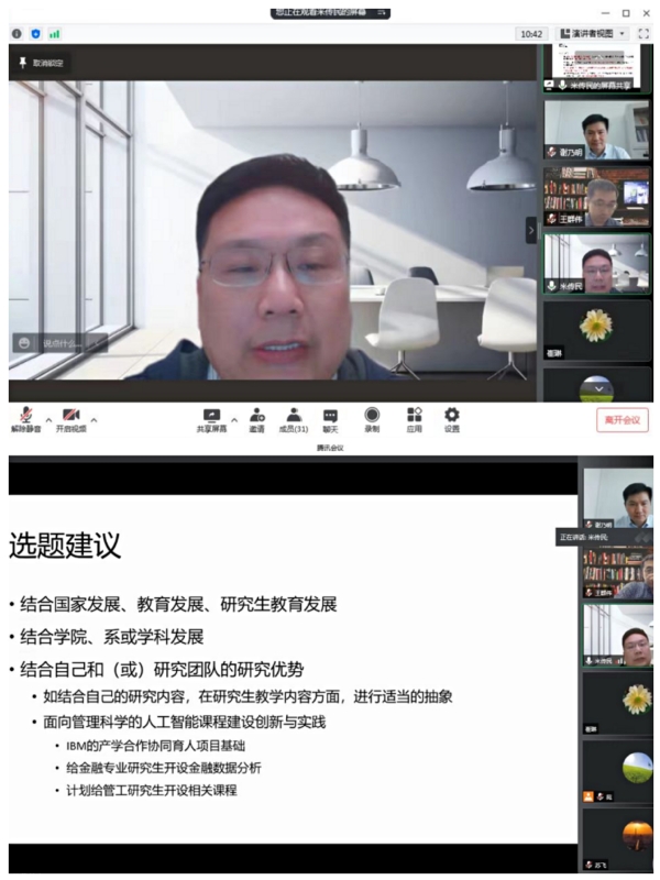 5月6日,Betway体育西汉姆联开展了“研究生教育教学高质量发展研讨月”线上活动,邀请人事处副处长王群伟教授、管理科学与工程系主任米传民教授作为主讲人,分享了教学改革研究项目申报与完成的相关经验。学院副院长谢乃明教授、近40位青年教师代表及教学办相关人员共同参与了此次活动。