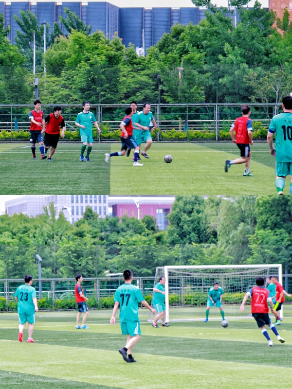 随着副院长邓晶老师的一脚开球,比赛正式开始。双方队员迅速进入状态,老师们不时打出精妙的配合和有威胁的射门,学生队凭借良好的技术,一脚捅射率先攻破了教师队大门。上半场以学生领先结束。