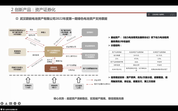 本次讲座中,张烨轩首先梳理了中国债券市场的发展情况、产品构成以及业务特点等,然后聚焦信用债,结合实际业务流程介绍了不同业务岗位的职责、特点与要求,并分别从传统债券、资产证券化产品、信用衍生工具出发,结合具体案例对债券产品的发行以及结构特点进行了深入分析。
