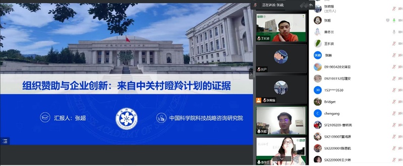 9月23日,中国科学院科技战略咨询研究院博士后张超应区域经济与产业经济研究所邀请,在线上为我院师生作了题为“组织赞助与企业创新:来自中关村的瞪羚计划的证据”的精彩报告。本次报告由查冬兰副院长主持,相关教师、研究生和本科生参加了此次学术报告活动。