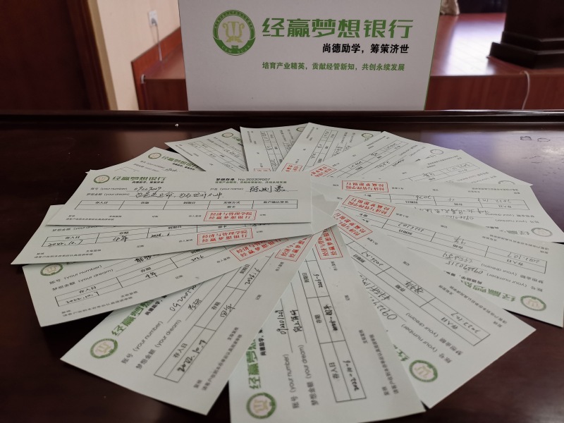随后,同学们拿起笔慎重填写了“经赢梦想银行”储蓄卡,储存梦想,经赢未来,指引逐梦之路。