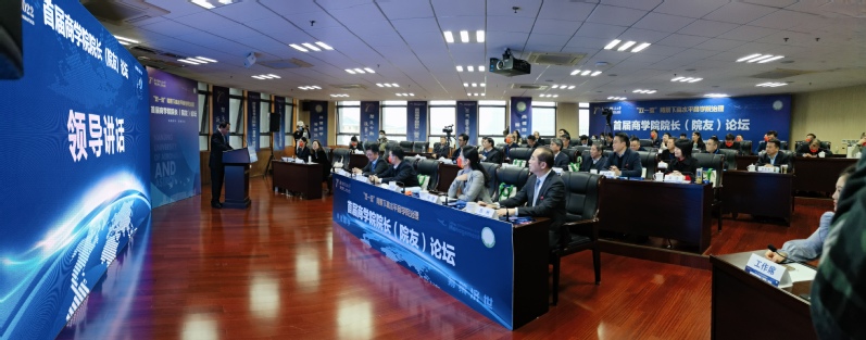 单忠德、苏州、周德群和江苏科技大学经济管理学院原院长苏翔、南京师范大学商学院院长白俊红共同启动首届商学院院长(院友)论坛,并发布商学院院长(院友)论坛专属标识。