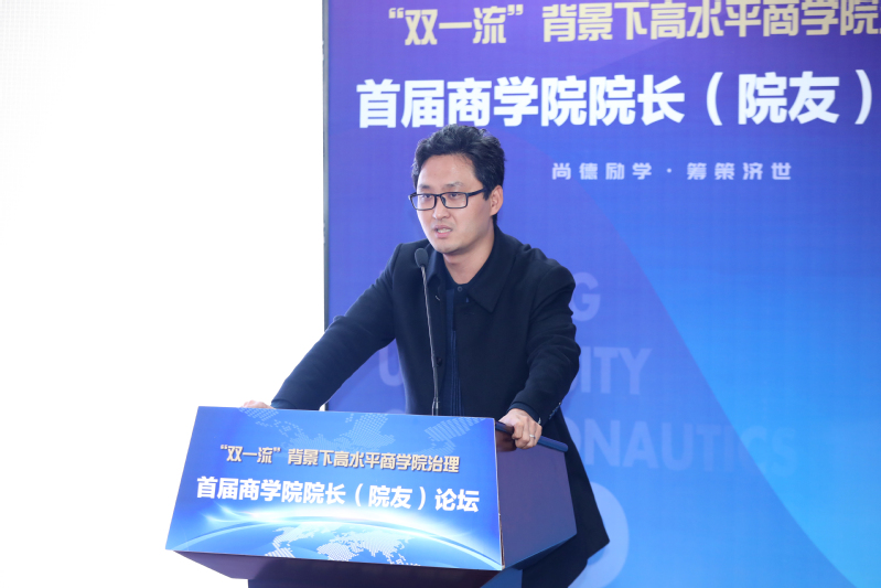 校长单忠德院士作了题为“以一流商学院建设赋能中国特色、世界一流大学建设”的讲话。他指出,建设世界一流大学需要一流商学院支撑,要坚持“四个面向”,强化交叉融合。商学院是培养“既懂技术、又懂管理”复合型人才,推动教育、科技、产业等要素融合的重要阵地,要始终面向国家重大战略需求和区域经济发展需要,不断优化升级现有学科体系,完善学科交叉融合机制,持续深化多领域协同,加强重大创新平台和基地建设,更好赋能高水平人才培养和高水平科技自立自强。建设世界一流大学需要一流新文科赋能,要坚持特色发展,塑造学科优势。文科是高水平研究型大学建设的重要基础,是建设世界一流大学的重要组成部分。学院要进一步强化学科特色与优势,持续打造一批特色化研究方向、研究团队和研究平台,加快建设并发挥高端智库的战略咨询作用,不断提升精品文科对“双一流”建设和国家重大工程的支撑力和贡献度。建设世界一流大学需要新动能助力,要坚持开放办学,促进融通发展。学院要在成就校友、凝聚校友、服务校友方面发挥更大的作用,要与校友携手联动、共创永续发展。要立足新发展阶段,完整准确全面贯彻新发展理念,服务构建新发展格局,坚持“开放办学、开放创新、开放合作、开放共赢”,更好地有机嵌入到区域重大发展战略和产业转型升级全局,发挥好包括校友在内的各类资源,积极探索更多产教深度融合的新机制新模式,努力为构建现代化产业体系提供坚实的人才和智力支撑。