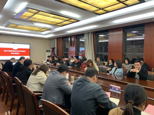 苏州书记首先介绍座谈会的目的和意义,希望各位学生代表能够畅所欲言,切实反映同学们在学习和生活中的问题和诉求。研究生代表围绕课程体系设计安排、研究生教材使用、课堂教学方法等方面提出了自己的意见和建议。MPAcc学生代表提出,希望老师们能够利用现代化的教学手段,引进课堂实时互动工具,通过手机App发放课堂练习题,及时掌握同学们答题情况,以提升课堂教学效率。MEM学生代表提出,希望论文答辩后的同学组织论文写作经验分享会,及时分享答辩经验。MBA学生代表建议增加创新创业课程的教学比例,有针对性地进行创业实践教学和企业案例现场教学,实现理论与实践的有机融合。