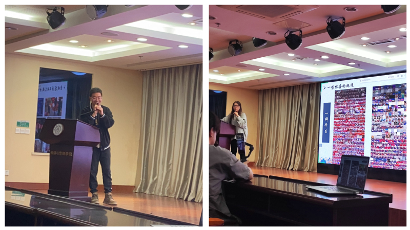 本次活动还邀请到我校二十二届研支团成员、目前我院企业管理研二学生约日古丽•托合提,与学院2022级本科生辅导员张延波,共同分享了他们在西藏的支教生活,以支教老师、西部计划志愿者、南京拉萨的连接者三重身份作为一年总结,分享支教过程中感受到的爱与温暖。鼓励同学们依托暑期社会实践、西部计划等平台,践行雷锋精神,让青春在全面建设社会主义现代化国家的火热实践中绽放绚丽之花。