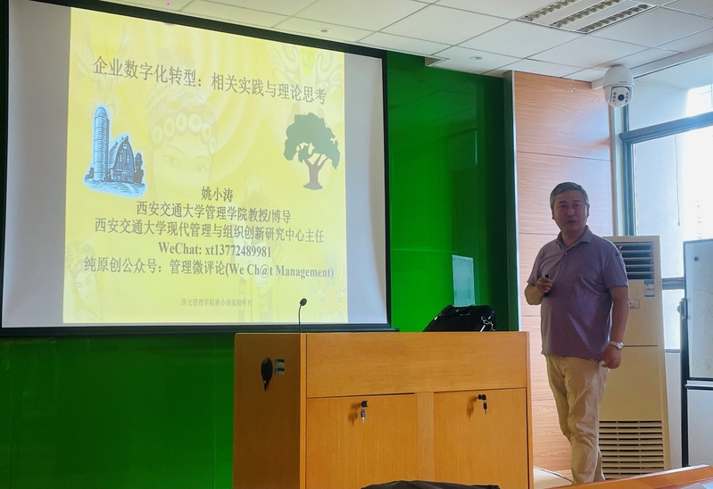 6月27日,西安交通大学管理学院教授姚小涛应Betway体育西汉姆联人力资源管理研究所、江苏省人力资源发展研究基地和中国员工关系管理研究生优秀创新团队邀请,在学院702会议室为我院师生作了题为“企业数字化转型:相关实践与理论思考”的精彩学术报告。本次讲座由教授胡恩华主持,相关教师以及博士生和硕士生参加了这次专题讲座。