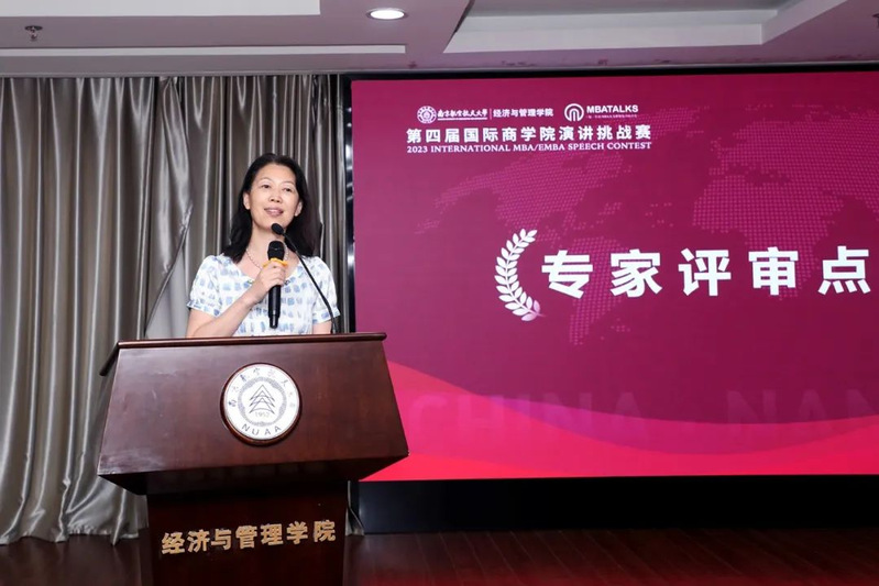 在各位选手决赛成绩揭晓之前,第四届国际商学院演讲挑战赛(南京赛区)总决赛评审团主席邓丽芸老师以及钱多多老师代表专家评审团对南京赛区总决赛选手表现进行了整体点评!