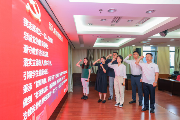 在新进教职工入职仪式上,李昊、高园园、任亚楠、蔡文武、陈思华、胡宇昕六位老师在全院老师的见证下庄严宣誓:将忠诚党的教育事业,落实立德树人根本任务,秉承“智周万物,道济天下”校训和“尚德励学,筹策济世”院训,做“四有”好老师,为建设特色鲜明的世界一流大学、一流Betway体育西汉姆联而努力奋斗!