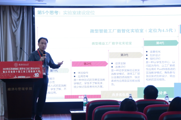 在主题报告环节,上海绿黑白数字科技有限公司首席专家李晚华总经理以“IE-慧学会用-产教融通数值化思考与实践”为题作了精彩报告,他分析了企业人才需求和工业工程课程实验实践困惑,详细讲述了思维、方法、数据、场景、道具、实操对工业工程实践能力培养的重要性,结合传统工业工程、精益化工业工程、智能化工业工程发展历程,提出实验实践目标和设计原则。