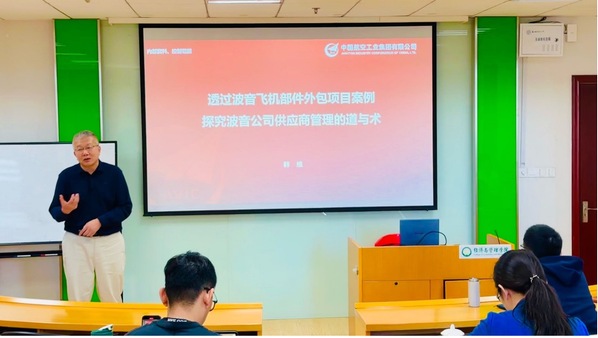 10月20日下午,中国航空工业集团有限公司首席技术专家韩维主任(国家专家库民用飞机专家,必威西汉姆联兼职教授,曾任成都飞机工业(集团)有限责任公司董事、副总经理、总法律顾问、科技委副主任等),受Betway体育西汉姆联邀请为师生们带来了一场题为“透过波音飞机部件外包项目案例探究波音公司供应商管理的道与术”的学术报告。Betway体育西汉姆联副院长周志鹏主持讲座,陈剑、赵亚普、徐志涛、钱玲飞、姚斐思等教师代表、硕/博研究生现场聆听了报告。