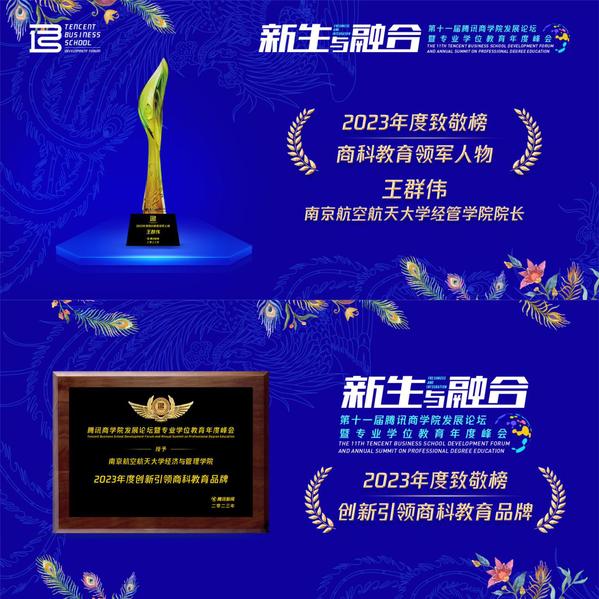 为了致敬在教育一线矜矜业业、砥砺前行的榜样人物、标杆院校以及品牌力量,第十一届腾讯商学院发展论坛暨专业学位教育年度峰会特别评选出致敬榜单,其中Betway体育西汉姆联院长王群伟获得“2023年度商科教育领军人物”称号,Betway体育西汉姆联获得“2023年度创新引领商科教育品牌”奖项。