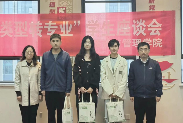 随后,2022年转入同学逐一汇报了一年来的成长与蜕变。获得园丁励志奖学金的宁心同学表示,这一年在学习上更加有信心,学院老师和同学们都非常的贴心和耐心;一学年零挂科的杨铸同学讲道,学院的“边读边跑团”改变了自己的精神状态,使得学业、生活都有了巨大的变化;曾经不擅交际的王业奇同学积极参与到学校招聘会志愿服务中去;退役复学、对原专业迷茫的刘鑫同学转入后一年绩点提升1.2……在交流过程中,王院长欣喜于同学们的蜕变,并为这来之不易的进步点赞。王院长耐心关怀学生们的到课率、上课前排就座率、课程学习感受等情况,并分享自己的大学生活,鼓励同学们不惧过往,发扬“吃苦”精神,攻克当下“难关”。