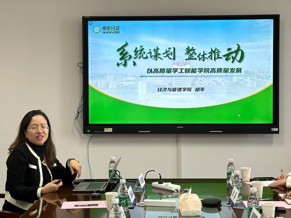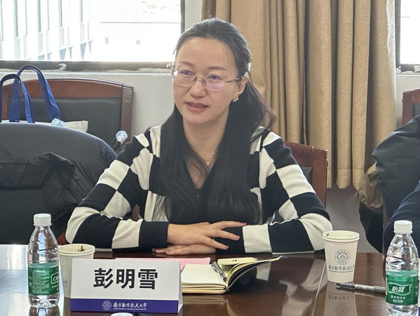 胡苹首先代表学院向彭明雪一行的到来表示热烈欢迎,她从学院历史沿革、学科专业设置、学生基本情况等方面详细介绍了学院的相关情况;同时结合年度工作,分享了学工团队如何系统谋划、融入学院中心工作,助力学院高质量发展的特色做法。她表示,北理工与南航都为工信部直属重点高校,为国家和地方经济建设领域培养了一大批高层次人才。而作为以工科为主高校的经管学院,只有跳出学工看学工,立足商科谋划未来,才能实现高质量人才培养的目标。希望双方未来能深入开展多领域合作,持续加强院校交流,共同赋能院校发展。