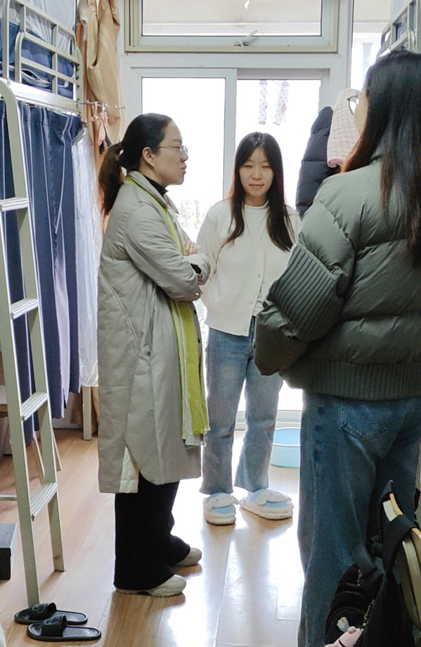 检查过程中,院领导与辅导员逐一深入学生宿舍与工作室,对整体卫生情况、是否使用违章电器、用电安全等情况进行全面细致地检查,并与同学们面对面交流,了解新学期同学们的思想、学习、生活、身心状况,叮嘱大家要增强自律意识,加强自我管理,遵守校纪校规,共同维护好宿舍的干净整洁。