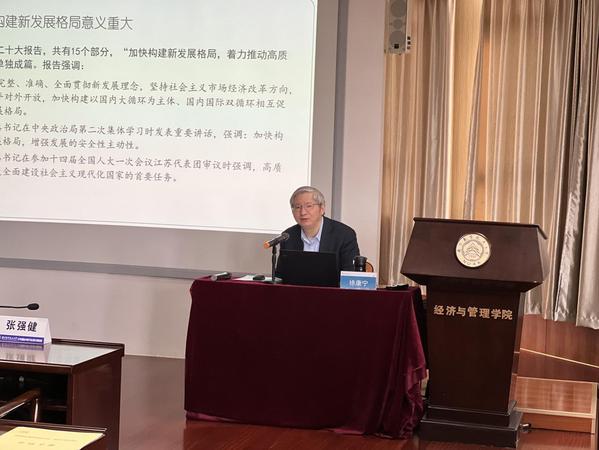 加快构建新发展格局意义重大。党的二十大报告共有15个部分,“加快构建新发展格局,着力推动高质量发展”单独成篇。徐康宁教授从准确把握新发展格局的科学内涵,科技自立自强是国家现代化的战略支撑,全面提升科技创新能力、推动高质量发展等三个方面进行阐释和解读。课程主题鲜明、深入浅出,具有很强的指导性和启发性。
