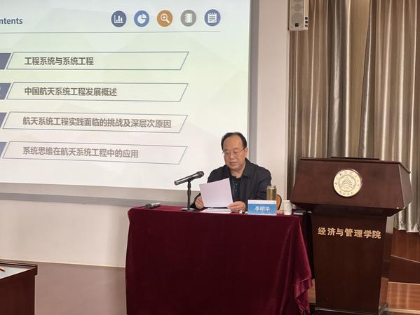 本次课程,李明华总师将党的二十大报告中提出的“七大思维”与中国航天发展史、中国航天系统工程紧密结合,通过研究航天系统工程的特征方法,提炼中国航天系统工程发展的四个阶段(探索起步期、快速发展期、整体提升期、创新跨越期)。发展过程中,系统思维的应用不断深化并推动中国航天事业持续进步,取得了举世瞩目的成就。