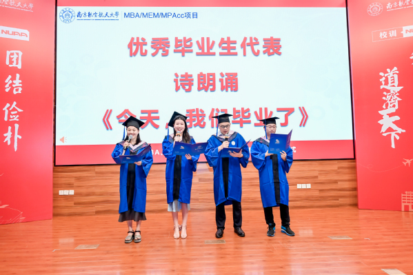 逐梦之旅,再度启航。2024届毕业典礼上,优秀毕业生代表刘丹、汪奕彤、施敏捷和王波怀揣感恩之情,满心眷恋与不舍献礼母校感恩母院,深情朗诵集体创作的现代诗《今天,我们毕业了》。