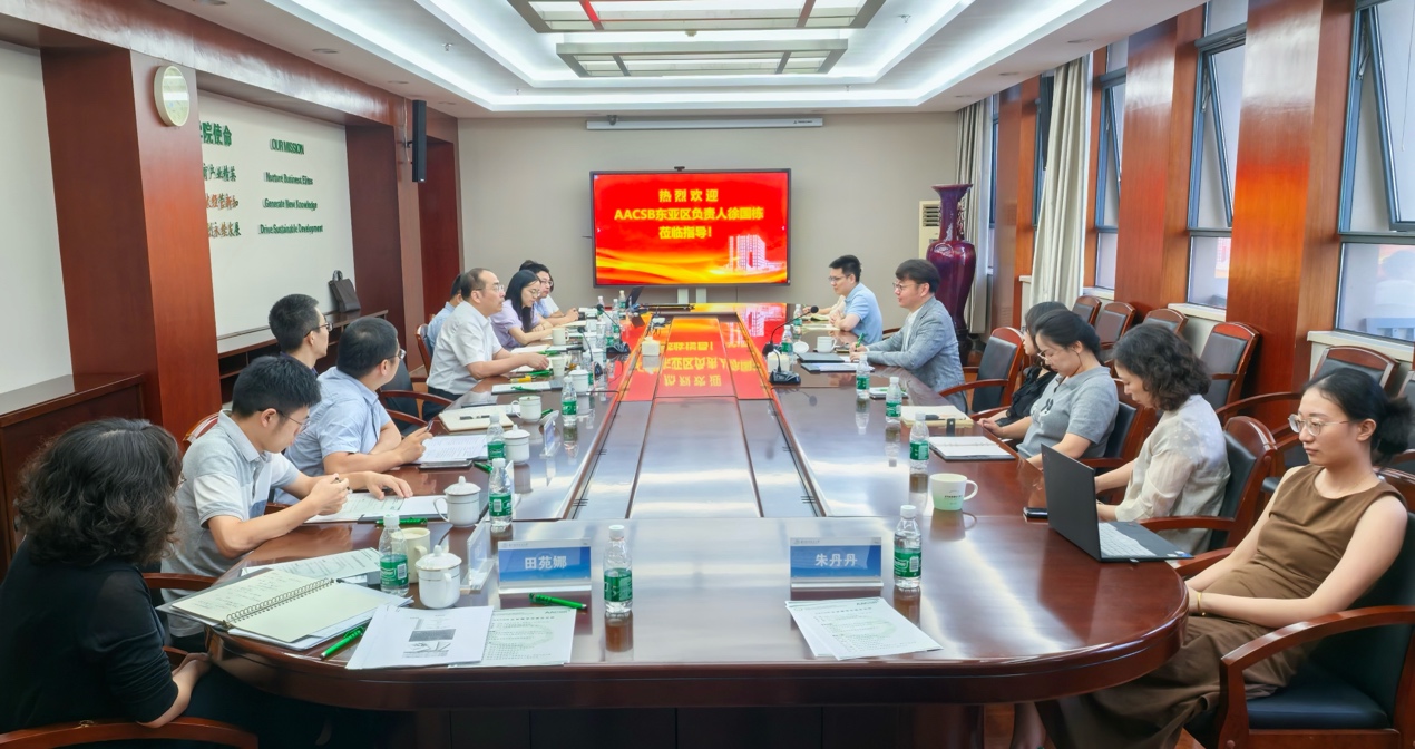 王群伟院长详细介绍了学院总体情况,期待借助AACSB国际认证的核心理念推动学院高质量发展,为实现“成为一所根植于中国土壤具有国际竞争力的一流经济管理学院”愿景而持续努力。
