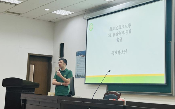 何沙玮老师就“新加坡国立大学311联合培养项目”进行宣讲,围绕项目优势、开设专业、项目申请流程及时间、课程设置等方面为同学们答疑解惑。