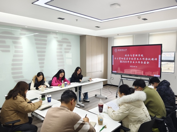 胡苹作总结发言。她充分肯定了学院2024年学生工作取得的成绩,也分析研判了新时代新征程上学生工作的使命与挑战。她强调,要深刻领会学校学生工作会议精神,充分认识学生工作在学生思想政治教育、三观引领、综合素质提升、学业支持、心理健康保障、高质量就业等方面的重要意义;要坚决贯彻校党委对学生工作的决策部署,不断强化战略思维、创新思维和系统思维,努力提升政治领导力、思想引领力和价值塑造力;要严格落实“引思想、正三观、强素质、促学业、保安全、助发展” 的学生工作要求,高质量开展学生思想政治教育,高站位教育引导学生成长成才。