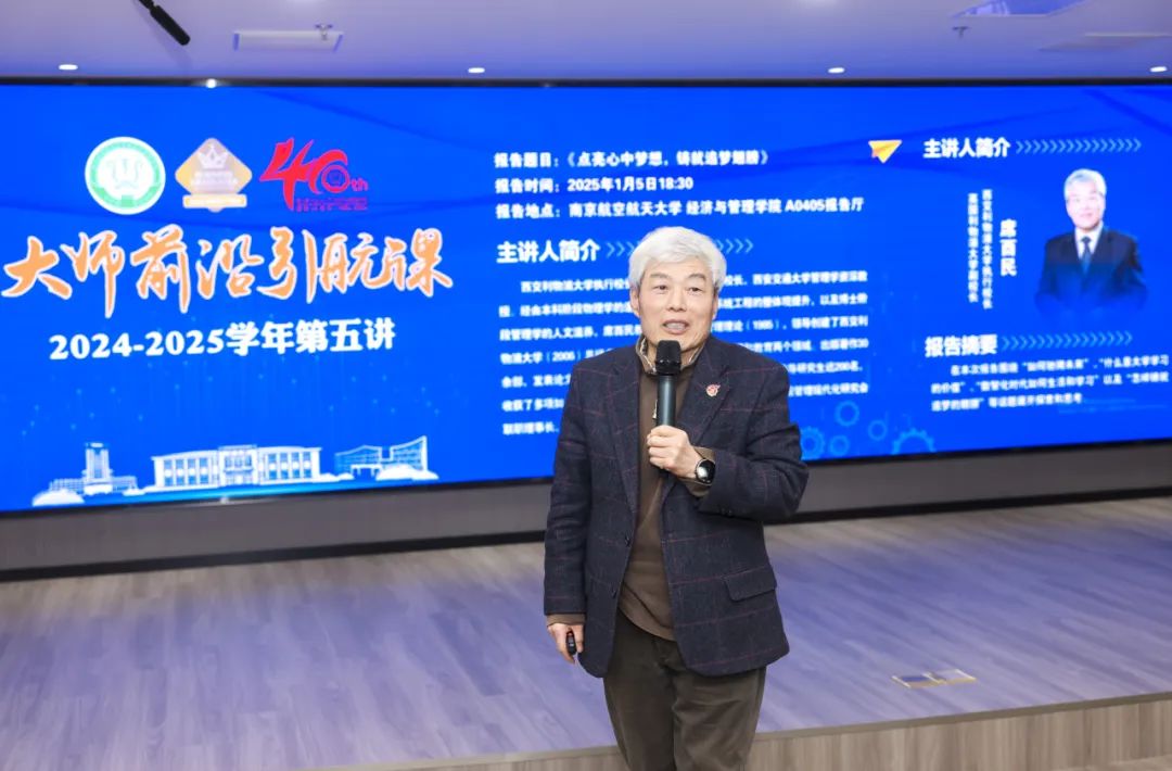 2025年1月5日晚,“大师前沿引航课”第五讲在Betway体育西汉姆联A0405报告厅举行。本期邀请到西安交通大学原副校长、西交利物浦大学执行校长、英国利物浦大学副校长席酉民教授授课,题目为《点亮心中梦想,铸就追梦翅膀》。Betway体育西汉姆联150余名师生参加,报告内容在学院视频号同步直播。Betway体育西汉姆联党委书记苏州主持报告会。