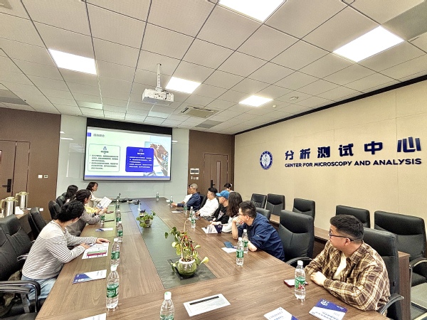 实验室参访结束后,MBA教育中心师生与分析测试中心的老师们进行了产学研对接会。分析测试中心副主任巴素英对中心现况、发展历程,特别是现有仪器平台以及测试服务流程等进行了详细介绍。同学们将自己的工作需求与实验仪器用途相结合,并提出了专业相关问题,巴素英副主任耐心解答,并表示欢迎企业进一步沟通需求,对接产业。
