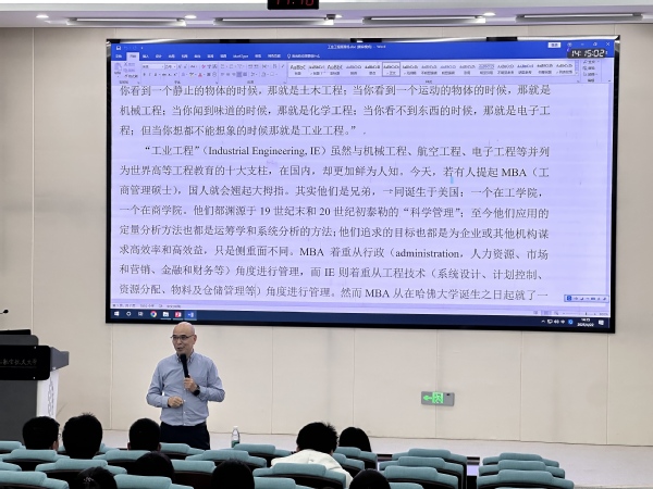 讲座伊始,张庆通过生动案例和幽默讲解,系统梳理了工业工程学科从泰勒科学管理到智能制造的演进脉络。针对“物流与供应链”“质量管理与可靠性技术”等十大核心专业方向,深入剖析了学科内涵、应用场景及发展趋势等关键问题,为在场学生搭建起立体化的专业认知坐标系。