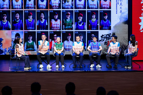 2024级和2025级南航学子代表以振奋人心的诗朗诵《我在南航报道》,勾勒出南航70余年辉煌发展历程,紧密串联起学校、学院发展与家国脉搏,将南航精神接力给全体新同学。