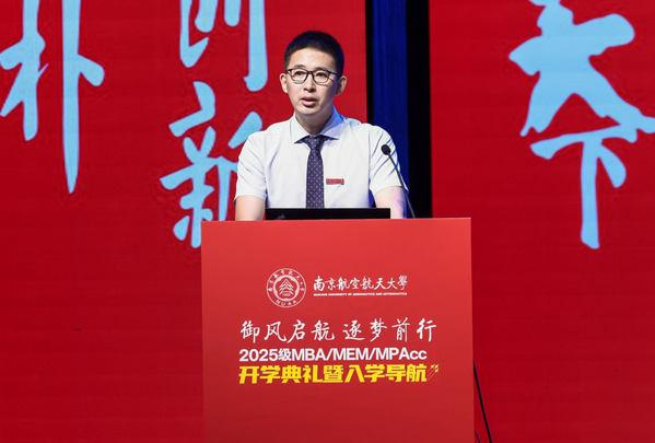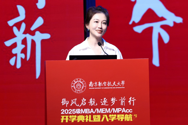 2025级MBA/MEM/MPAcc新生代表尹乐、廖江和柏婷婷表达了对南航精神的理解,对未来学习生活的规划,期待通过研究生学习,成为有思想、有担当、有情怀的经济管理人才,践行南航精神,在未来的事业领域破浪前行。