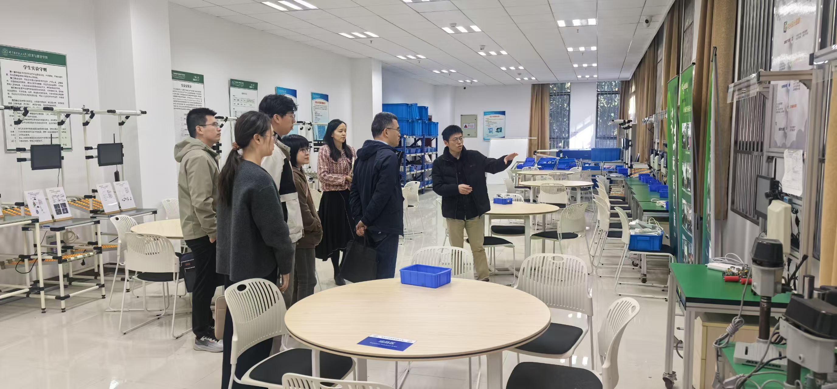 调研团队实地参观了学院实验室建设情况,包含可配置智能产线实验平台、智能物流与智能仓储实验平台、数据融合与质量管理实验平台、创新梦工厂、云桌面实验室等多个功能区。调研人员详细了解了各实验室的设备配置、空间布局、使用效率及运维管理情况,并现场观摩了部分实验教学软件的操作演示。