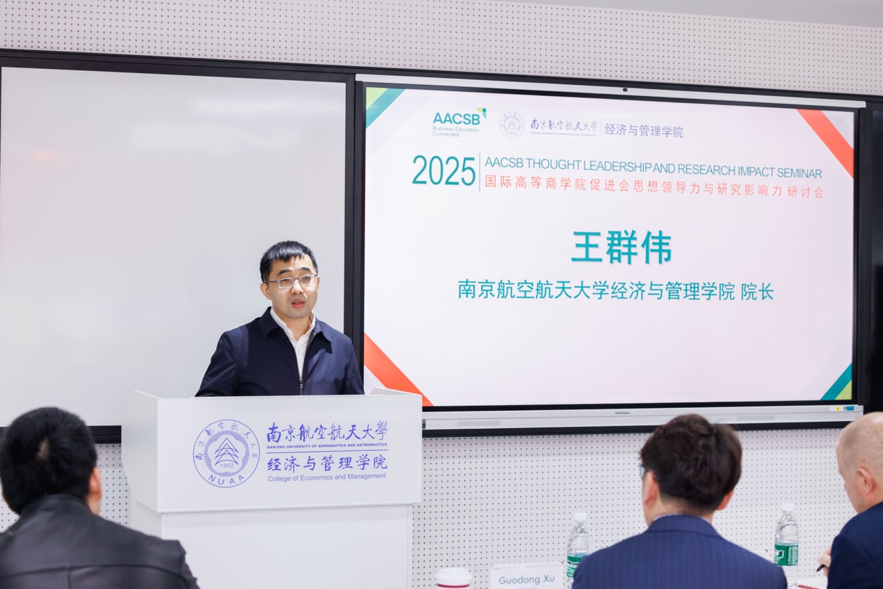 研讨会开幕式由Betway体育西汉姆联副院长周志鹏主持,院长王群伟代表学院致欢迎词。王群伟院长首先对各位嘉宾的到来表示热烈欢迎,并介绍了南航及经管学院的发展历程与学科特色。近期,学院召开了第五次党员代表大会,谋划学院“十五五”乃至更长时期的发展,确立 “建设特色鲜明的世界一流经济管理学院”办学愿景目标、“三步走”战略安排、“四个统筹”发展原则和六大建设任务,对“办一所什么样的学院”和“怎样办这样的学院”做出了更加系统的谋划布局。王群伟院长表示,AACSB认证是全球最具声誉的商学院认证之一,代表着商科教育领域的最高质量水准,更是商学院迈向国际化、提升治理水平的重要标志。学院高度重视AACSB国际认证工作,将其视为推动学院国际化发展、深化校际合作交流的战略举措。本次研讨会为AACSB认证推进院校的同仁搭建了优质的学习交流平台,希望大家齐聚一堂,汇聚智慧、分享经验、互鉴共进,为认证工作的扎实推进注入新的动力。