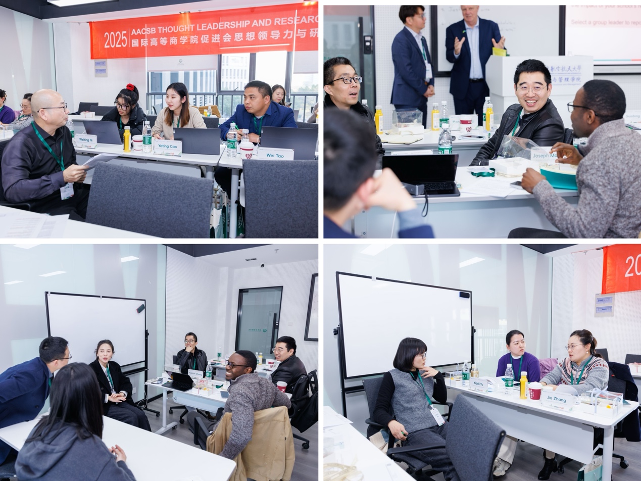 会间通过案例复盘、分组研讨等多元化互动形式,引导与会者进行沉浸式学习。大家围绕“思想领导力与商学院使命的融合”、“研究影响力的科学衡量”以及“聚焦社会影响力的战略意义”等核心议题展开了热烈讨论。这些互动环节不仅有效促进院校间的深入交流与合作,更为各商学院未来的建设与发展提供了宝贵的借鉴思路。