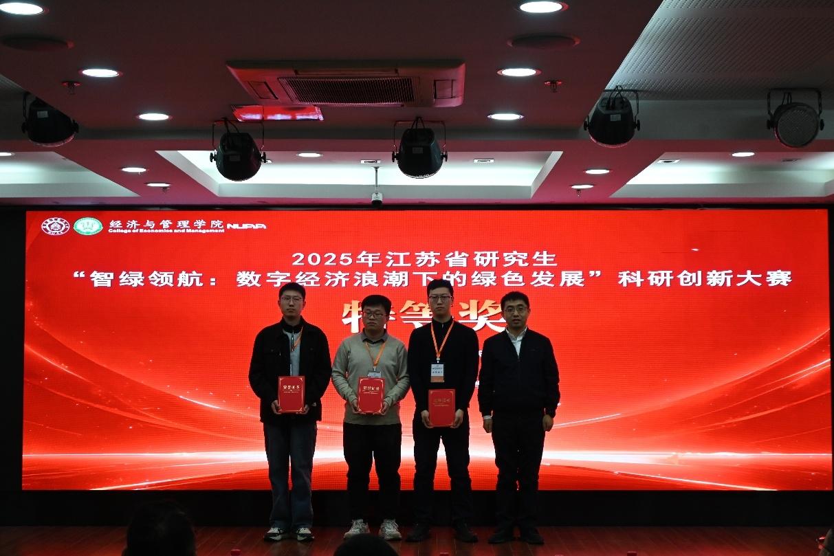 2025年12月5 - 6日,由江苏省经济学类研究生教育指导委员会主办、必威西汉姆联承办、南京财经大学联合承办的2025年江苏省研究生“智绿领航:数字经济浪潮下的绿色发展”科研创新大赛在Betway体育西汉姆联成功举办。本次大赛聚焦数字经济与绿色发展的前沿交叉领域,来自省内外 30 余所高校的百余名专家学者和研究生齐聚一堂,以科研创新为桥,共探数字经济与绿色发展的深度融合路径。