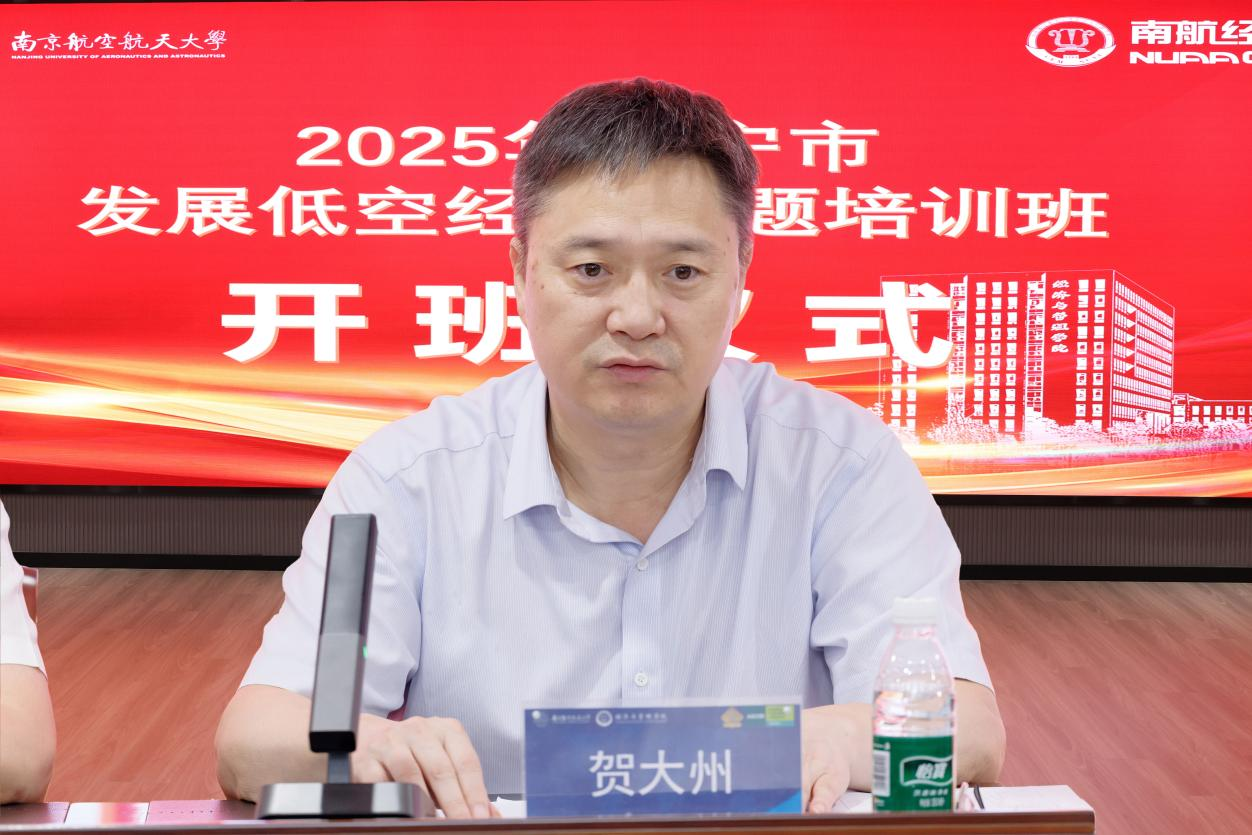 南宁市发展和改革委员会党组成员、副主任,市营商环境建设局局长贺大州作开班动员讲话。他表示,低空经济是习总书记和中央部署关注、南宁市委市政府重点推进的领域,对全市新质生产力和高质量发展意义重大。贺主任对南航Betway体育西汉姆联表示感谢,本次培训精心安排,课程涵盖理论、政策、规划和实操模块,针对性强且形式多样。他希望各位学员珍惜机会、学深悟透、学以致用。同时,他也强调各位学员要严格遵守中央八项规定,服从培训纪律,确保培训顺利完成。