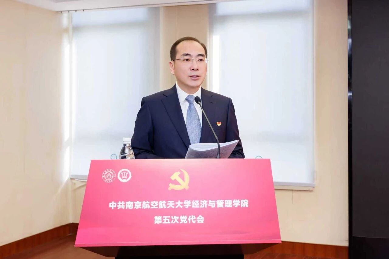 杭育新代表学校党委对大会的召开表示热烈祝贺,对经管学院党委过去七年取得的成绩给予充分肯定。他希望学院以此次大会为新起点,深入学习贯彻习近平总书记致南航建校70周年重要勉励精神,在学校党委坚强领导下,抢抓机遇、乘势而上,在新征程上实现更高质量发展。他对学院今后工作提出三点希望:一是坚持政治引领,筑牢一流学院建设根本保证;把党的全面领导贯穿办学治院全过程、各方面,推动“一融双高”实践落实落细。二是坚持内涵发展,提升一流学院建设核心能力;坚持为党育英才,打造一流人才培养范本;勇攀学科高峰,推动优势学科、新兴交叉学科群峰突起;超常规引育英才,加快建设高水平人才高地;聚焦国家战略,提升服务发展能力;深化国内外交流合作,在世界学术舞台和商学院改革发展中不断发出南航经管声音。三是坚持真抓实干,确保高质量实现一流学院建设目标;要以钉钉子精神,切实落实党代会战略部署,将蓝图变为现实。