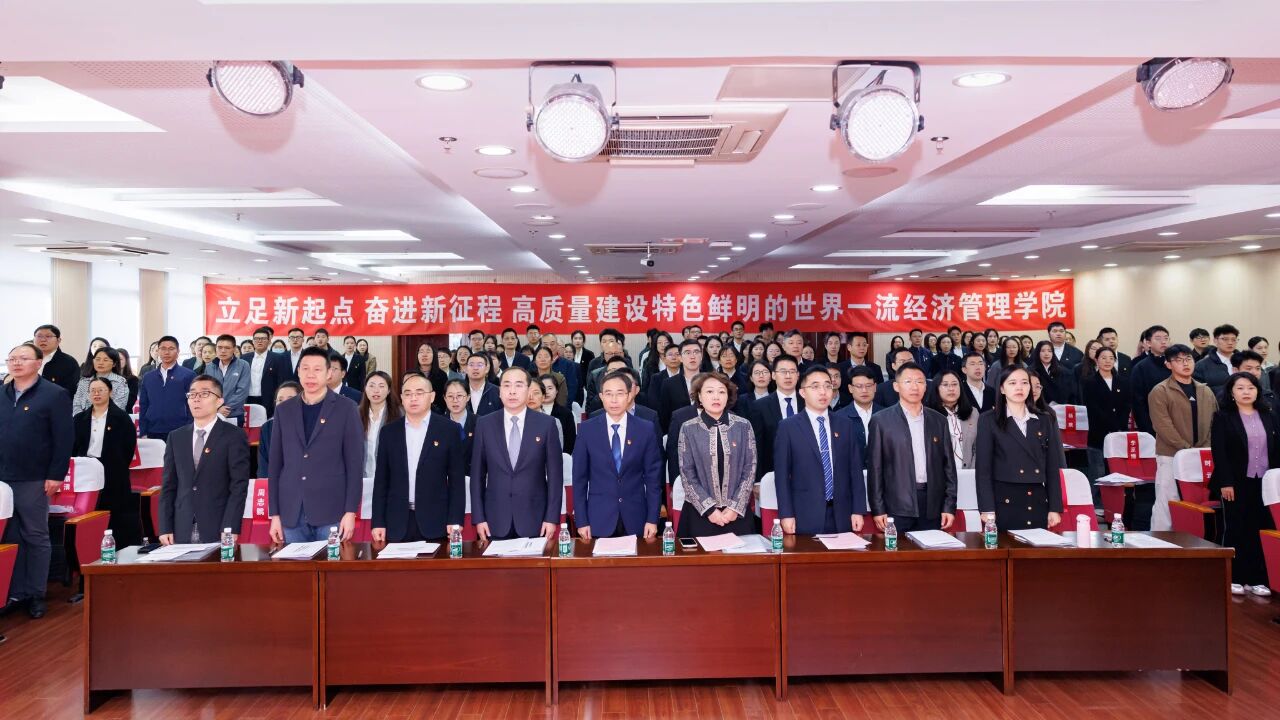 大会听取了学院党委书记苏州同志所作的《凝心聚力 踔厉奋进 高质量建设特色鲜明的世界一流经济管理学院》工作报告,报告全面回顾了学院过去七年在党建引领、学科建设、师资队伍、人才培养、科研服务、开放办学、文化兴院等方面取得的显著成就,系统总结了发展经验,深刻分析了面临的形势与挑战,明确了“一个目标、四个统筹”战略布局和“三步走”战略安排,并对未来五年学院党的建设和事业高质量发展作出全面部署。