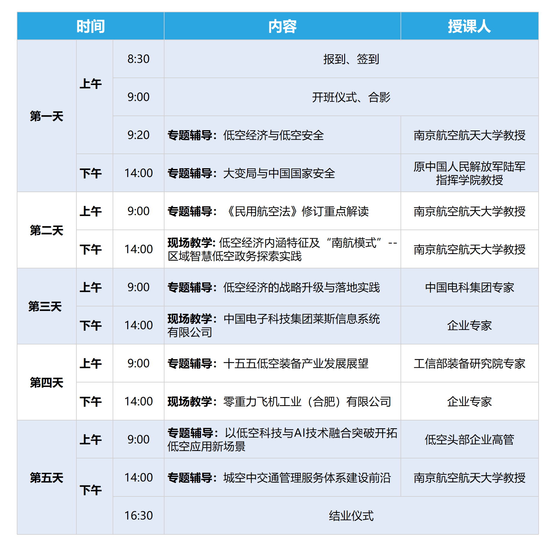 2025年12月,全国人大常委会会议表决通过新修订的《民用航空法》、国家发改委印发《低空经济及其核心产业统计分类(试行)》,南航经管学院中国低空经济产业生态领航者培育研修班应时推出,助力低空经济产业高质量发展。